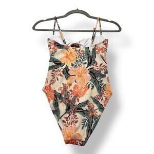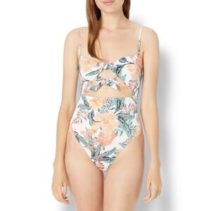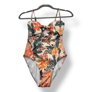 Roxy Just Shine One Piece Swimsuit Tropical Print Cutout Women's XS Cream Orange