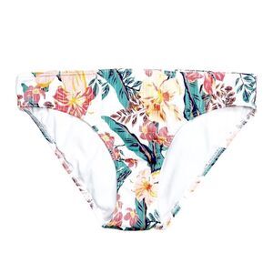 Roxy Just Shine Bright White Mahe Pink Tropical Full Bikini Bottoms Size…