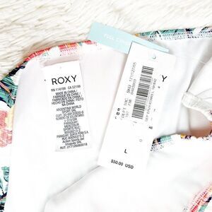Brand new with tags Roxy Just Shine Bright White Mahe Pink Tropical Full Bikini Bottoms Size Large.