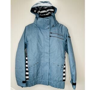 Roxy Kjersti Buaas Retro Blue Denim Removable Hood Zip Jacket S