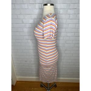 Roxy L Bring it On Multistriped V-Neck Short Sleeve Midi Dress Violet Large
