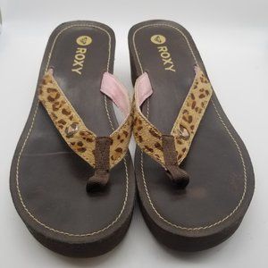 Roxy Leopard Print Cow Hair Wedge Heel Flip Flops
