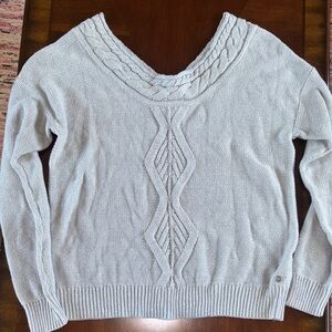 Chic sweater with intricate knit design. Soft and comfortable for everyday wear. Excellent pre owned condition with no flaws. Wide neckline, can be worn off the shoulder depending on how it fits you.
