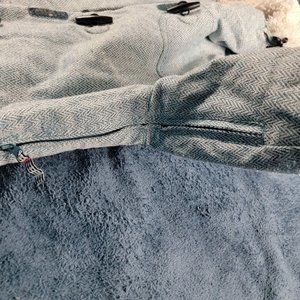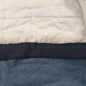 Good looking jacket. As you can see in the pictures, it does have the fuzzy stuff on the bottom of the jacket but still good and does have some markings on the jacket itself and the inside pocket.