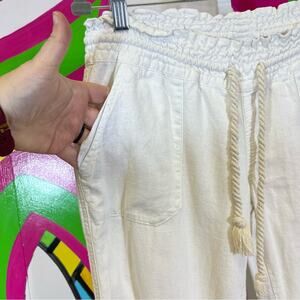 Roxy, Linen Blend White Pants, Elastic Waist. Size Medium. Excellent condition!