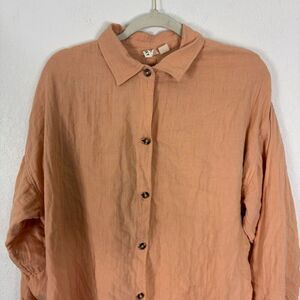 Great pre-owned condition Roxy Linen Blend Collared Button Down Oversized Shirt Orange Color