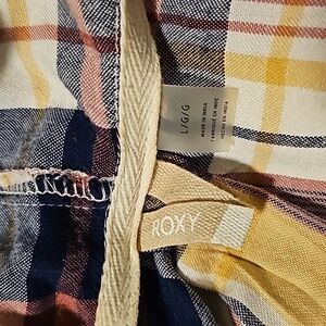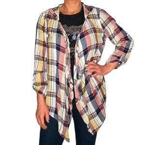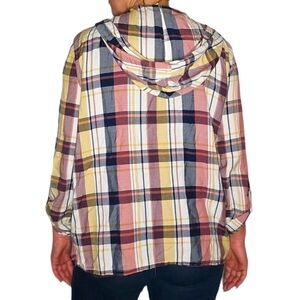 Roxy Loose Fit Plaid Hooded Long Sleeve Cover Size Large Pink Blue Yellow