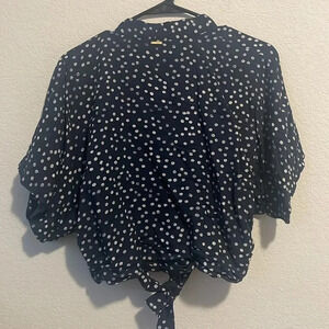 Gently worn Roxy size medium navy blue with white polka dot crop blouse with tie waist. Double lined nice quality top. Wide short sleeve.