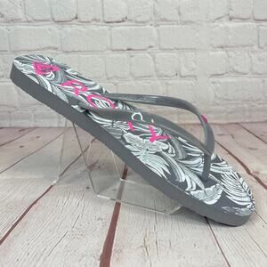 Roxy Melon III Gray Pink Floral Flip Flops Sandals Women’s Size 10