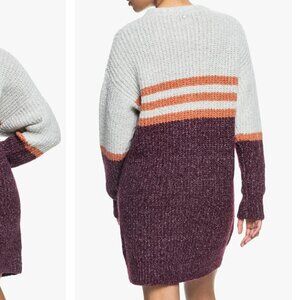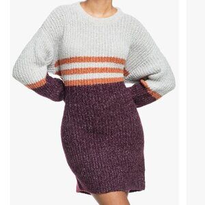 Great condition, new with tags. Roxy. Milky Cloud Long Sleeve Sweater Dress. Fig Color. When dress days fall during sweater season, you'll be super psyched to have this long-sleeve option, marked with happy stripes and color-blocked style.