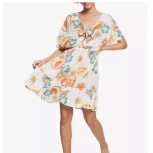 Roxy Mini Dress Small Snow White Summer Still Here Printed Reef Flower