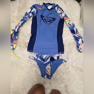 Vibrant Roxy swim set with floral design. Includes long-sleeve top and bikini bottom. Ideal for water activities. size Small fits till medium