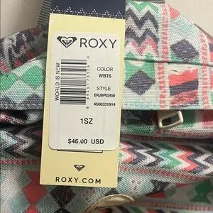 Stylish Roxy backpack with vibrant patterns. Features a front pocket and spacious interior. Perfect for everyday use.