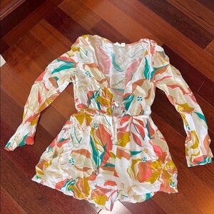 Roxy romper with a mix of vibrant colors. Features a unique pattern.