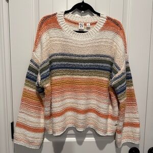 stripes in a cozy knit. Heavy/Thick cozy sweater. Perfect for casual wear. Oversized, drop shoulder fit.