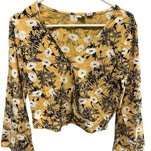 Roxy Mustard Flower Flared Bohemian Blouse Size Small