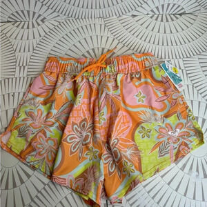 Roxy NWT Neon Hawaiian Print Elastic Waist Surf Swim Board Shorts‎ Women’s XS