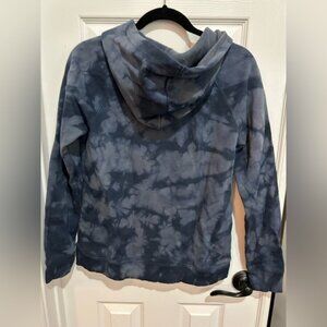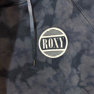 Roxy hoodie in navy and gray. Features a drawstring hood and front pocket.
