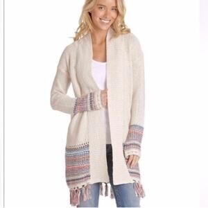 Roxy | Near Future Knit Fringe Open Cardigan Sweater Boho Cream Large