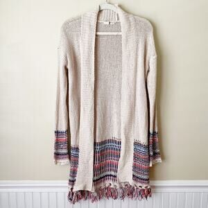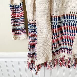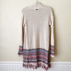 Features: Near Future cardigan sweater, open front, knit, long sleeves, fringe, boho chic, bohemian, western, colorful