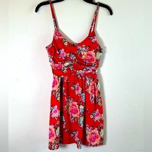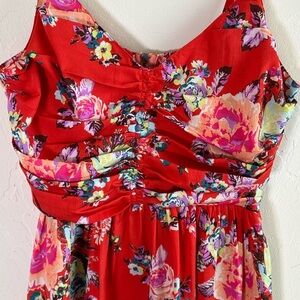 Roxy Orange floral slip mini dress with ruched front bodice and gold zipper at back. In great condition! Sz M