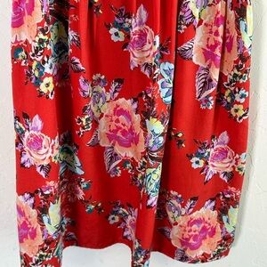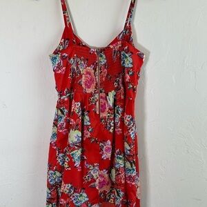 Roxy Orange Floral Slip Dress with Ruched Front Bodice and Gold Zipper Sz M