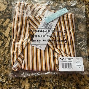 Roxy PT Beach Classics Full Bikini Bottom Size M Golden Ocher Stripe
