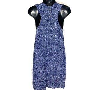 Roxy Patterned Print Sleeveless Racer Back MIDI Dress Blue Size Small