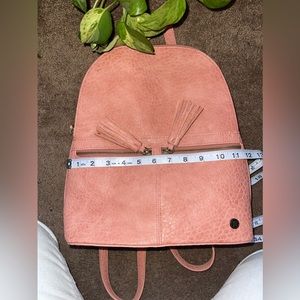 Roxy pink pebble leather backpack purse in new condition! Has only ever been worn once. It’s in an adorable peachy-pink color that goes great with everything and perfect for summer! Tassels give it a classic boho feel! Measurements in photos.