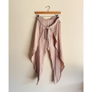 Roxy Pink Beige Striped Tie Waist Coverup Beachy Resort Vacation Pants
