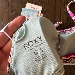 Roxy Pink Green Pale Dogwood Flowy Mood Bralette Bikini Top Large NWT