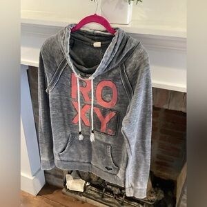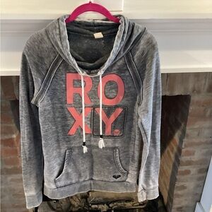 Roxy Pink Lettered Grey Sweatshirt XS w/Drawstring
