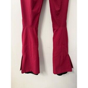 Roxy womens pink snow pants in size XS, designed for skiing and snowboarding. Features a flattering high-rise fit, insulated lining for warmth, waterproof and wind-resistant fabric, zippered pockets, reinforced knees, and ankle zip cuffs to fit over boots. Ideal for winter sports, snow trips, and cold-weather adventures.