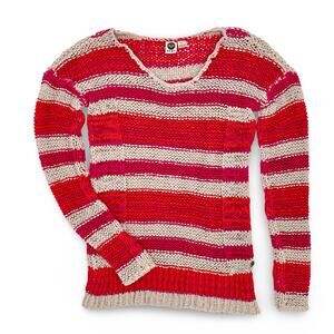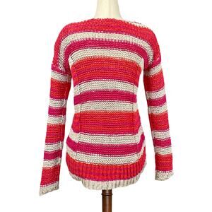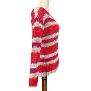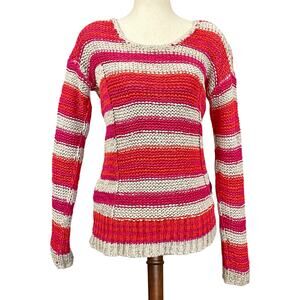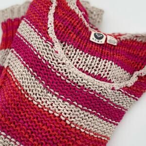 Roxy Crochet Knit Sweater Pink White Striped M Boho Y2K Beachy Hippie