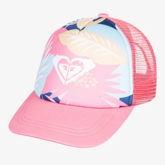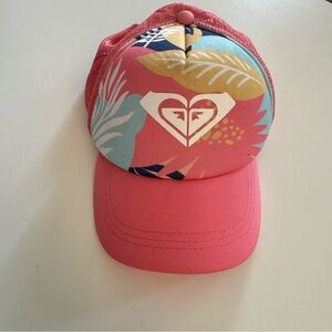 Roxy cap with a vibrant multicolor design. Features pink, blue, yellow, and white accents.