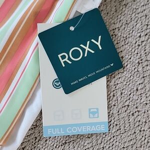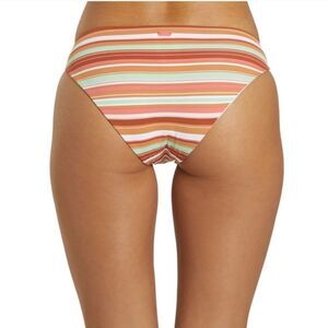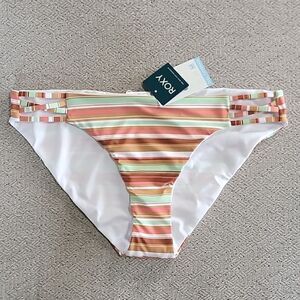 Roxy Pink White Green Rust Brown Striped Bikini Hipster Swim Bottom - Size XL