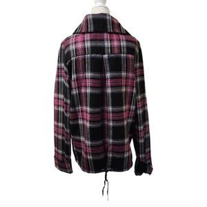 Roxy Plaid Button Close Jacket Coat XL Purple/Black/White Polyester Blend