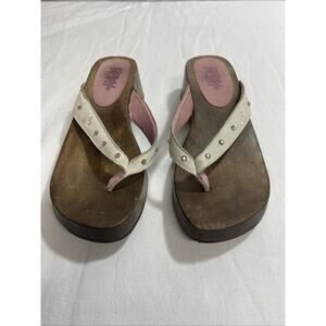 Roxy Quicksilver Vintage Moonstone Wood Sandal With Bling And Thick Heel Y2K