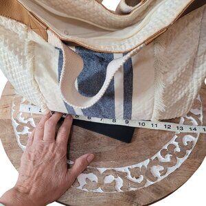 Roxy Quilted Canvas Blue & Off White Shoulder/Tote Bag Striped Design Coastal