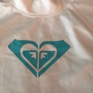 White Roxy rash guard . Worn once . Juniors size 14 or Large .