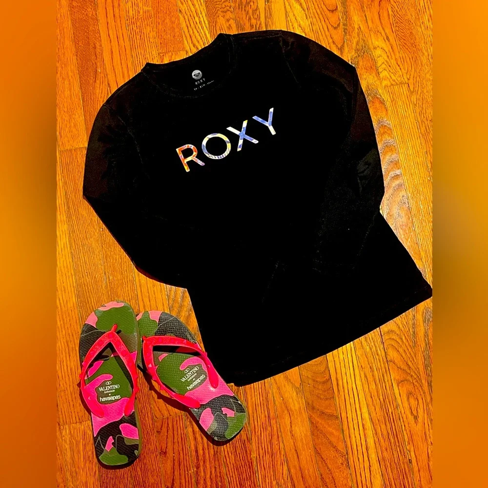 Be ready for summer with a genuine Roxy rash guard. Even if you don’t surf, you’ll look like you do. Size is XS, but I think it runs a little large and plenty of stretch.