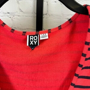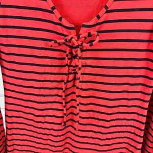 Roxy dress size large. Red, but bright like coral, dress with navy stripes. Lace up front and bell sleeves. Super comfy t-shirt material. Great condition. Smoke free home.