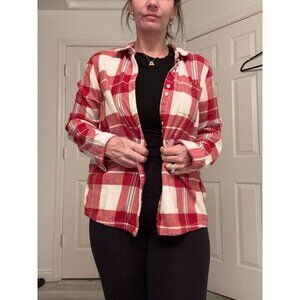 Roxy Red & White Plaid Button-Up Shirt Size child xl/adult Small
