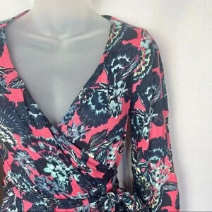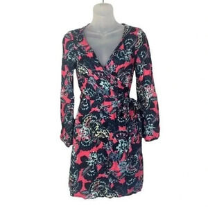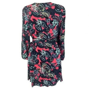 Roxy Retro Beach Hawaiian Small Hours Wrap Long Sleeve Mini Dress XS