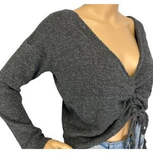 Roxy Rolling Hills Cinched Crop Sweater Gray Size S