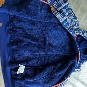 Heavy warm long length fleece jacket size large excellent shape! I have other sizes in this jacket see my listings and get ready for snow seasonnnnn!!