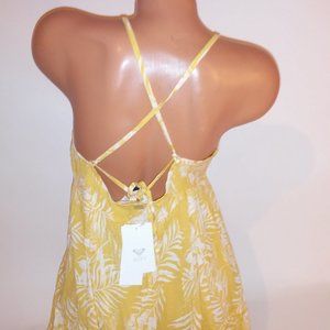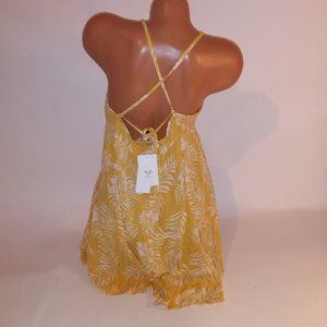 Roxy Sand Dune Dress Medium Yellow White Mini Floral Sleeveless Bust 18" Length