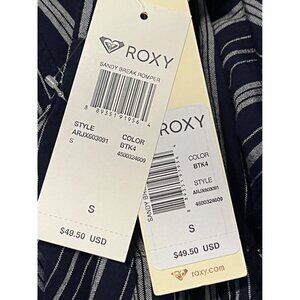 Roxy Sandy Break Stripe Romper Adjustable Strap Blue Shorts Sleeveless NWT New
