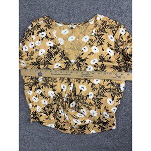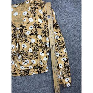 Roxy Shirt Womens Large Yellow Floral Long Sleeve Wrap V-Neck Tie Front Cropped