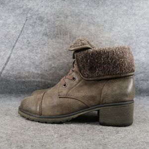 Used Roxy Shoes Womens 9.5 Bootie Lace Up Block Heel Fold Over Cap Toe Casual Taupe